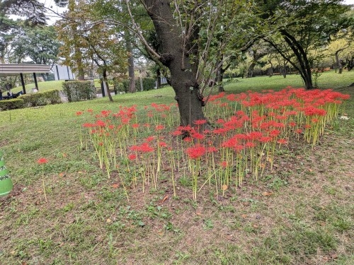 さてお彼岸には小平霊園へと行きましたが、彼岸花が咲いていました。うちのお墓にも以前はありましたが、今年は咲いていません。8月に木を少し切りましたが、その後あまり伸びていないので今回は木は切らずに掃除をしてお参りしてきました。ここに戒名を刻む予定です。赤字で。